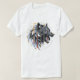 L'image est une illustration numérique avec la tête d'un loup stylisé à l'expression agressive, montrant des dents pointues et un regard féroce. La fourrure du loup est dépeinte dans les tons noir, blanc et gris, avec des accents d'or et de rouge, ajoutant un contraste dynamique et vibrant.