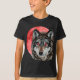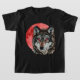 Une peinture acrylique d'un loup gris avec les yeux rouges rougeoyants devant une lune rouge.
