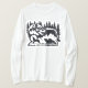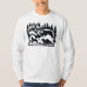 Scène boisée de loups hurlant sur la lune. Un grand loup est partiellement caché dans le paysage arrière - plan qui a des montagnes et des arbres. Tout le design est fait comme une silhouette en noir avec coutouts où la couleur de la chemise apparaît à travers.