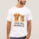 Celebrate your love for all creatures with this beautifully designed T-shirt featuring a realistic watercolor-style dog and cat illustration. Perfect for animal lovers, pet parents, and anyone who believes in kindness toward animals. This design blends a warm, minimal aesthetic with professional artistry — ideal for both men and women. Printed on high-quality fabric, it’s great for casual wear, gifts, or everyday inspiration.