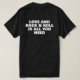 Le logo de Heart Cage SoS sur la "poche" et le message intemporel "Love and Rock N Roll is all you need" sur le dos. C'est une mauvaise grammaire, mais un grand message !