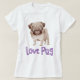 Aww...qui peut résister au visage doux d'un chiot Carlin ? Ce t-shirt canin amusant présente un joli dessin d'un chiot en Carlin blanc et bronzé. Chaque fois que vous portez votre chemise, ce carlin mignon vous enverra beaucoup de chemises d'amour sont disponibles en tailles femmes, hommes et enfants. Les t-shirts personnalisés pour chiens font de grands cadeaux pour vous ou l'amoureux des chiens spécial dans votre vie. Idéal pour les anniversaires, Noël Chien secourt groupes Promotions commerciales ~ vétérinaires, éleveurs, Paniers cadeaux à thème Chien Cadeaux d'amour ou d'appréciation Petite servante / fleurie cadeaux