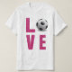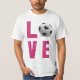 Love Soccer avec des lettres étincelantes rose chaud et le "o" est remplacé par un ballon de football.