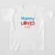 Nanny Loves Me T-shirts, cartes, autocollants, sacs de costumes, et plus avec coloré rouge, jaune, et bleu texte et conception du coeur. Ces vêtements et cadeaux Nanny Love me feront sourire !