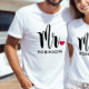 Le design personnalisé des chemises M. avec un script design moderne et un accent de coeur rouge peut être personnalisé avec le nom de famille du marié. Fait un grand cadeau mariage pour la lune de miel!