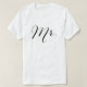 'M.' Calligraphie Black Script Simple moderne Classic Groom T-shirt Mariage. L'arrière - plan de base peut être changé en n'importe quelle couleur de votre choix. Vous pouvez facilement ajouter plus de texte / info / détails et/ou photos à ce produit. Illustration de fat*fa*tin. Facile à personnaliser avec votre propre message texte, nom, photo ou image. D'autres styles de police, filtres photo et fonctions d'édition sont disponibles sur la page "modifier la conception". ・ ・ ・ ・ ・ ・ ・ ・ ・ www.zazzle.com/fatfatin_blue_knot