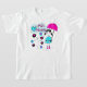 Filles de chaque âge qui aiment des magmas de boue et la pluie aimera cette conception mignonne et colorée de griffonnage comportant une fille dans un imperméable bleu turquoise et dentellera les bottes et le parapluie, un nuage de pluie, arbre de fleur une audition pour vous montrer des magmas de boue d'amour !