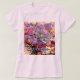 Belle expression de la foi par la Bienheureuse Mère Marie comme elle témoigne de sa foi en son Sauveur. De l'Évangile de Luc, ce verset de l'Écriture témoigne à d'autres sur un t-shirt rose, assorti aux jolies couleurs pastel et aux fleurs sur l'image.