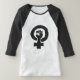 Le symbole femelle universel a combiné avec la main de solidarité en texte noir sur le T-shirt blanc