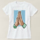 Mains ensemble dans une prière. Ce design semble vraiment efficace sur ce T-shirt féminin
