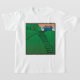 Une maison bleue au sommet d'une colline verte. Ce design semble vraiment efficace sur ce T-shirt garçon