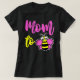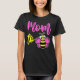 Ce t-shirt noir comporte les mots "Maman à Abee" arrangés avec un joli dessin animé d'abeille. "Maman" est écrit en écriture rose, "to" en écriture jaune, et l'abeille a des ailes roses et des rayures jaunes et noires. C'est un design sucré qui célèbre probablement une future mère.