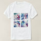 Le T-shirt de l'image est puissant et présente un design moderne et artistique sur le devant. Le design se compose de quatre panneaux rectangulaires disposés dans une grille en forme de fenêtre. Chaque panneau contient un éclat abstrait de couleurs à l'aquarelle, avec des nuances de bleu, de violet et de rose, ainsi que des effets d'éclaboussure. L'esthétique générale est créative et expressive, donnant au T-shirt un aspect unique et artistique.