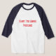 T-shirt Raglan Sleeve bleu foncé avec le logo du Gavel Podcast sur le devant et le code QR de la chaîne YouTube sur le dos. Confortable et en toute saison.