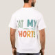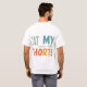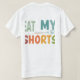 Ce design de t-shirt comporte l'expression ludique "Mangez mes shorts" dans une police multicolore audacieuse. Les couleurs pourraient être vives et fracassantes, ajoutant une pointe de désordre à la citation emblématique. Ce design est parfait pour quelqu'un avec un sens de l'humour sérieux qui n'a pas peur d'être un peu audacieux
