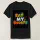 Ce design de t-shirt présente l'emblématique phrase "Mangez mes shorts" dans un design graphique audacieux et accrocheur. La phrase est rendue dans une variété de teintes vives contre un arrière - plan bleu clair solide, qui rappelle une esthétique des années 90. L'ensemble est ludique et nostalgique, ce qui en fait un choix parfait pour les fans de l'émission populaire "Les Simpsons".