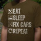 T-shirt Mangez le sommeil Fixer les voitures Répéter Funny