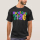 Festive shirt with "Mardi Gras 2026" in pastel shades of Mardi Gras colors: purple, green, and gold with a fleur-de-lis for the 0.