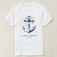 Chemise pour couple de lune de miel, mariage bleu et blanc. Parfait pour un mariage à la Navy (militaire) ou au bord d'un lac. Le design présente une ancre enveloppée dans une bannière avec le texte "Ancré dans l'amour". Personnalisez-le avec vos détails de mariage.