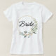 Cette élégante décoration florale est ornée du mot "Bride" encastré dans une délicate couronne botanique. Parfait pour les mariages, les fêtes de mariée ou toute célébration de l'amour. Les accents dorés et le feuillage vert ajoutent une touche sophistiquée et intemporelle à ce design.