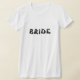 Ce tee-shirt de fête de bachelorette blanc est double face, avec la mention Mariée à l'avant et le nom de la mariée à l'arrière. Pour modifier le texte, cliquez sur le bouton Personnaliser. N'oubliez pas de modifier les deux côtés.