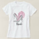 Un joli T-shirt pour la mariée avec des talons argentés et des roses roses. Personnalisez-le avec votre nom ou gardez-le comme Mariée.