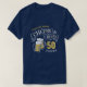 Elégant applaudissements et bières à 50 ans typographie design en bleu marine, jaune et blanc, Personnalisez-le avec votre propre texte, amusant et unique, idéal pour toute idée cadeau d'anniversaire pour les hommes, ou fête d'anniversaire faveurs pour toute occasion.