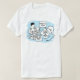 Une drôle de blague de dessin animé sur le devant d'un T-shirt. Cadeau pour un vendeur. T-shirt marketing. Un responsable marketing endure un terrain de vente publicitaire qui se compose d'un certain nombre d'idées fatiguées et de clichés. Drôle dessin publicitaire. Ce design est en bleu et noir sur une chemise blanche.