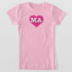Ce t-shirt est doté d'un coeur rose vif et sublime qui contient les lettres coques majuscules, blanches et audacieuses MA, l'abréviation officielle du Massachusetts, l'état de la baie.