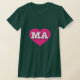 Ce t-shirt est doté d'un coeur rose vif et sublime qui contient les lettres coques majuscules, blanches et audacieuses MA, l'abréviation officielle du Massachusetts, l'état de la baie.