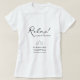 Massage Thérapie Lotus Logo Tagline Professional T-Shirt... Sur le slogan : "Relax ! Il est bon pour votre santé" dans la typographie de calligraphie moderne pour "Relax!" et une police sans serif facile à lire pour le reste du dicton. C'est un tag que j'ai écrit pour un client qui a depuis pris sa retraite... alors n'hésitez pas à l'utiliser pour votre propre entreprise, si cela vous convient. Un simple logo de lotus d'art de ligne met en avant le concept de sérénité et de relaxation. Tous les exemples de texte à l'avant et à l'arrière de ce carte de visite (à l'exception de la calligraphie graphique "Relax!") peuvent être facilement révisés avec vos propres détails sur le modèle de personnalisation.