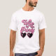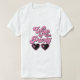 T-shirt de la fête de la bachelorette drôle et mignon pour la mariée avec "Femme de la fête" dans un script rétro rose chaud des années 70 et lunettes de soleil en forme de coeur. Un t-shirt "Life of the Party" assorti est disponible pour l'équipe de bachelorette.