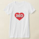 Ce t-shirt est doté d'un coeur rouge vif contenant les lettres coques supérieures, blanches et audacieuses MO, l'abréviation officielle du Missouri, l'état show-me.