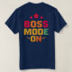Ce design de t-shirt est doté d'un message audacieux et confiant qui dit "Boss Mode On" dans une grande police accrocheuse. Le design est simple mais impeccable, avec une esthétique propre et moderne. L'expression "Boss Mode On" est un slogan populaire qui véhicule un sentiment de pouvoir, d'autorité et de détermination. Ce t-shirt est parfait pour quiconque veut projeter une image de confiance et de succès.