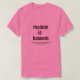 C'est la chemise rose avec des lettres noires et un contour turquoise.