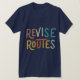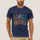 Le design des t-shirts montre l'expression "Revise Routes" dans un affichage dynamique multicolore. Chaque lettre éclate d'une couleur différente, donnant un sentiment d'adaptabilité et d'ouverture d'esprit à l'exploration de nouveaux chemins.
