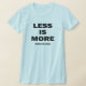 Nous vivons dans un monde matérialiste où l'achat, achat, achat sont devenus la norme. Les gens remplissent leurs maisons de substance et puis leurs garages. Et quand ce n'est pas assez, ils louent l'espace mémoire qu'ils remplissent de substance qu'ils ne vont jamais employer. La question est si nous avons besoin de toute la substance que nous achetons ? Souvent, nous ne faisons pas. Réduisez, jetez une partie de votre substance et obtenez "moins est plus [plus ou moins]" de T-shirt. Vous ne le regretterez pas.