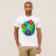 La chemise unique, à la mode, à la mode, mignonne et impressionnante avec une image colorée du globe de la terre, avec le bleu, puzzle rouge et jaune de ruban d'autisme rapièce. Symbolisation du soutien universel de l'autisme. Un amusement et un cadeau original pour des parents avec un enfant autiste, pour porter pendant le mois international de sensibilisation sur l'autisme d'avril. Ou un grand présent pour l'anniversaire de la maman ou du papa, mère ou fête des pères, ou Noël.
