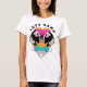 This hand drawn t-shirt has a geometric face design made from bold shapes and vibrant colors like hot pink, orange, turquoise, and black. It’s topped with the phrase “LETS GAME” in a curved arc, making it perfect for gamers, creatives, or anyone who loves quirky, abstract art. The top text is customizable, so you can swap it out for your own phrase, name, or inside joke.