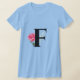 T-shirt Monogramme Lettre initiale F en noir avec rose ros