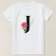 T-shirt Monogramme Lettre initiale J en noir avec rose ros