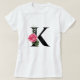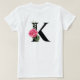 T-shirt Monogramme Lettre initiale K en noir avec rose ros
