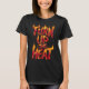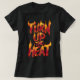 Illustration enflammée avec le texte Turn Up The Heat écrit en caractères gras et stylisés avec flammes pour les traits.