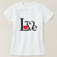 Un T-shirt d'amour avec un coeur rouge pour la lettre o dans le mot. Celui d'une manière aimable de partager l'amour. Peut être customisé à votre choix de couleur de chemise.
