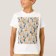 Le t-shirt de cet enfant a un design moderne du milieu du siècle des ovales et des rectangles en motif qui se répètent dans le design.