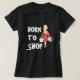 Né pour faire du shopping, une chemise de nouveauté amusante pour toutes ces filles qui adorent aller faire du shopping. Texte blanc né pour faire du shopping et une femme drôle tenant avec beaucoup de sacs de courses. Une idée cadeau de nouveauté amusante pour une amie qui aime ses voyages d'achat.