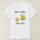 Ne vous inquiétez pas. Soyez heureux. Est un jeu de mots sur un t-shirt blanc pour lui ou elle, décoré de deux dessins animés, très mignon, abeilles bébés. Les abeilles sont principalement jaune vif et le texte est en noir de style désespéré.