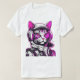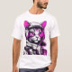Un chat cyberpunk frappant portant des casques et un casque futuriste. Les teintes roses et violettes audacieuses et le design pointu en font un lieu idéal pour les amateurs d'art numérique, de mode punk et d'esthétique de science-fiction.