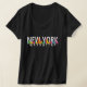 Design de style rétro New York Manhattan avec skyline de ville cool avec palmiers et bâtiments urbains. Une combinaison parfaite pour votre prochaine escapade citadine, voyage en ville ou vacances d'été ou tout aussi facile à la mode quotidienne.