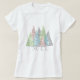 Chemise Noel Christmas Women T-Shirt avec des arbres de Noël en fausse parties scintillant et des détails en losange, rose, vert, bleu et argent. Chemise de Noël élégante, chic et filante, aux couleurs pastel.